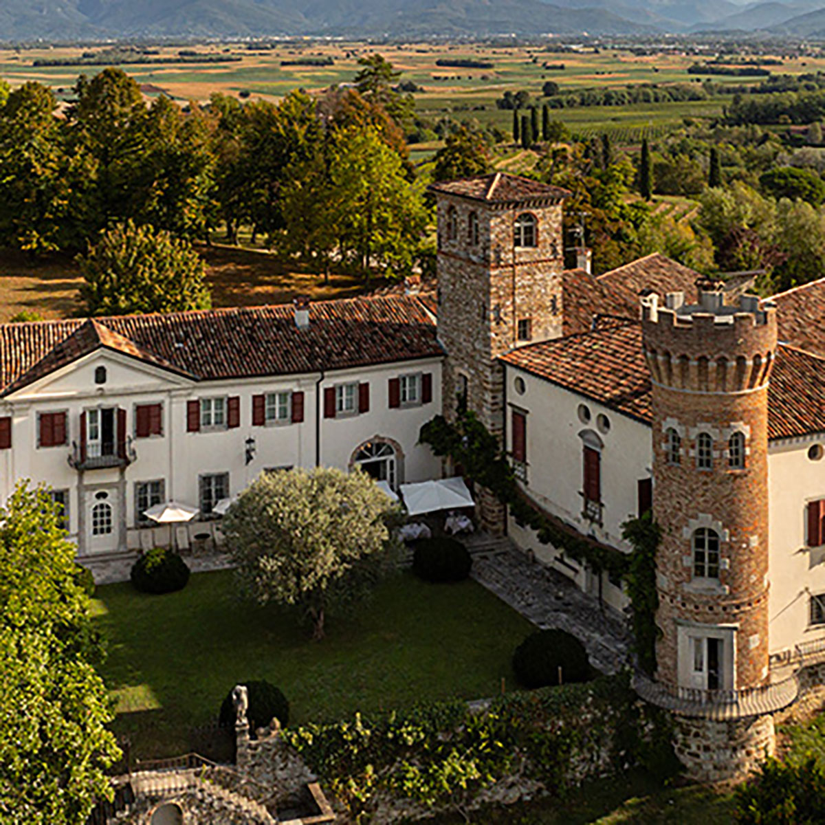 Die Burg wird erstmals 1219 erwähnt, als sich Giacomo von den gleichnamigen Herren gegen den Patriarchen von Aquileia verbündete. Obwohl das Dorf bereits zwei Jahrhunderte früher existierte, erlangte die Burg aufgrund ihrer Verteidigungsposition in der Nähe von Udine und Cividale strategische Bedeutung und wurde zum Schauplatz zahlreicher Konflikte. Nachdem sie verraten worden war, wurde sie 1306 vom Grafen von Gorizia erobert, zerstört und drei Jahre später wiederaufgebaut. Später ging es in den Besitz der Adligen de Portis über und wurde im 17. und 18. Jahrhundert umfassend renoviert. Heute thront das Schloss mit seinen zwei hohen Türmen über einer weiten Landschaft mit Weinbergen.
